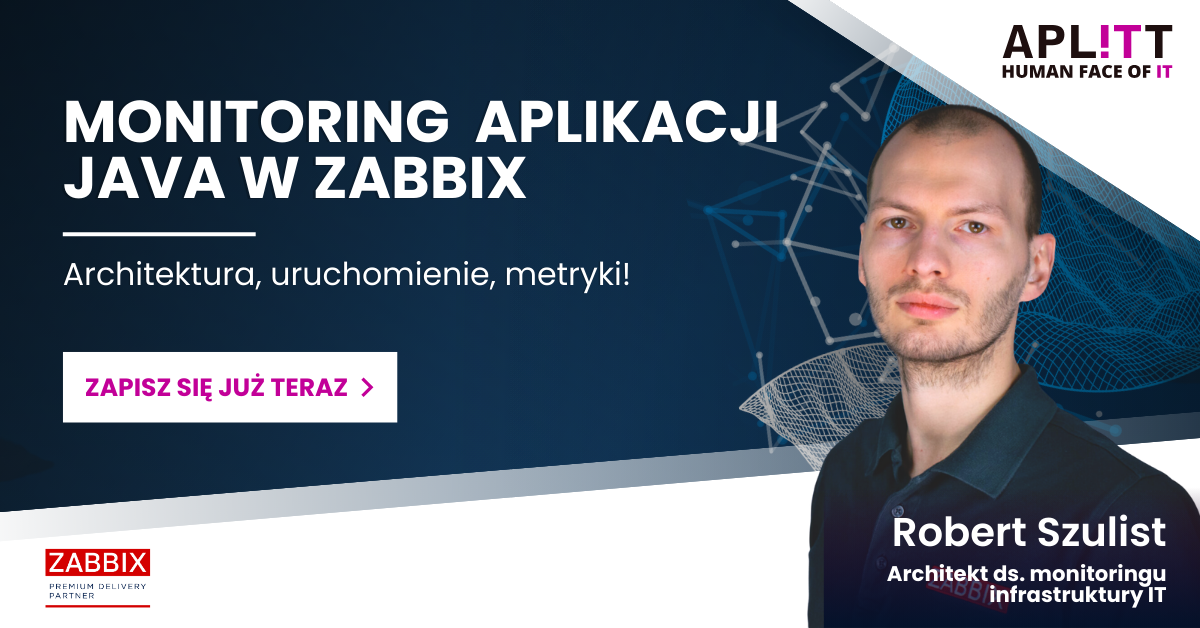 Pierwsze to monitoring aplikacji Java. Analiza wdrożeń Aplitt pokazuje, że usługi takie jak Tomcat, Elasticsearch czy Apache są powszechne, a mimo to rzadko objęte monitoringiem aplikacyjnym. Robert Szulist pokaże, jak uruchomić podstawowy monitoring Javy w Zabbixie i jak pracować z metrykami.